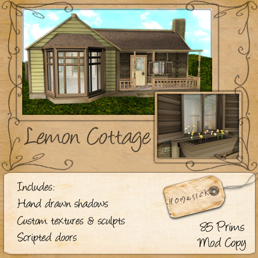 The super talented lxlnoel Resident, of the store Homesick, also has her adorable Lemon Cottage out for sale here for the duration of the event. At 100L$ It’s an absolute steal.